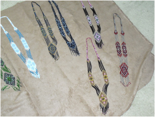 There is a tradition of bead-work in Ukraine and one can find old blouses with beadwork on them, as well as modern necklaces made in western Ukraine. I did bring back some western Ukrainian necklaces to sell.